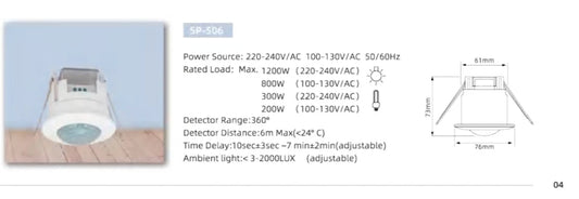 360 Degree Recessed PIR Ceiling Occupancy Motion Sensor Detector Light Switch