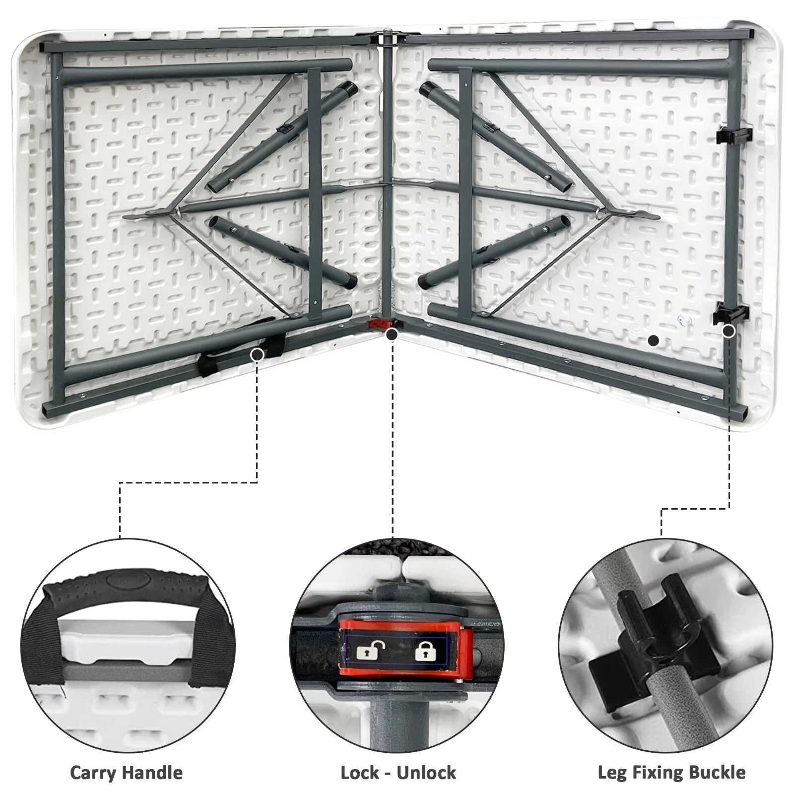 - Approx. open size (6FT TABLE): Length: 183 x Width: 76 x Height: 74cm (It can hold up to 150 kg approx)
